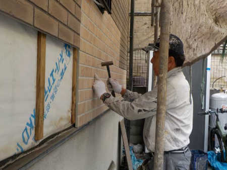 モルタル外壁の浮きが有る場合は固定が必要が必要